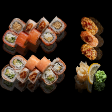 4 Stück Fuschima Maki | 4 Stück Harumaki | 4 Stück Ebi Spice Tempura | 4 Stück Tempura Maki | 8 Stück Ceasar Tempura Maki