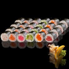 4Stk Unagi-Aal, 4Stk Lachs ,4Stk Thuna, 4Stk Ebi, 4Stk Pipino, 4Stk Avocado