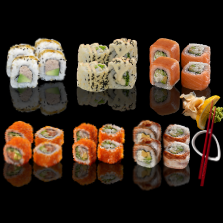 California-Yaki (4 Stück) | Kumo-Yaki (4 Stück) | Dynamit (4 Stück) | Yaki-Syki (4 Stück) | Ika-Garnelen (2 Stück) | Ika-Lachs (2 Stück)
